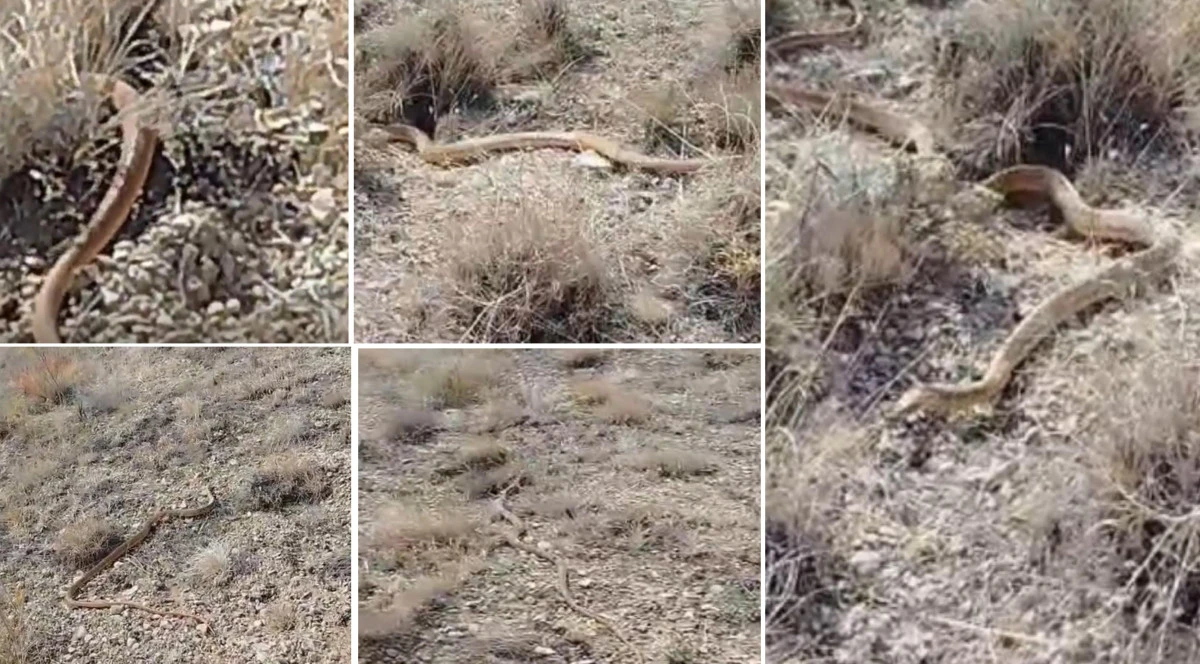 Akova Mahallesi’nde boyu iki metreyi geçen agresif ama zehirli olmayan kırmızı yılan görüntülendi.