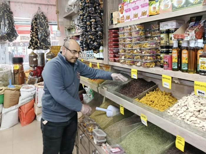 Dededen babadan gelen aktarlık mesleğini üçüncü kuşak olarak sürdürdüklerini ifade eden Bağcı, “Kış aylarının gelmesiyle birlikte insanlar daha sık grip oluyor, üşütüyor ve hastalanıyor. Biz de bu süreçte vatandaşlarımıza doğal bitkilerle destek olmaya çalışıyoruz. Kış ayları için en ideal bitkiler arasında ıhlamur, karanfil, zerdaçal, zencefil, tarçın ve havlucandan oluşan özel karışımımız yer alıyor. Bu karışım vücudu zinde tutarken bağışıklık sistemini güçlendirmeye yardımcı oluyor. Aynı zamanda nefes yolu rahatsızlıklarında da oldukça faydalı bir karışımdır ve kış aylarında mutlaka tüketilmesi gereken ürünler arasında yer alır. Harnup pekmezi, dut pekmezi ve üzüm pekmezi gibi farklı pekmez çeşitlerimiz vücudu daha dinç ve sağlıklı tutmaya yardımcı oluyor. Tahin de kış aylarında mutlaka tüketilmesi gereken ürünler arasında. Tahinsiz bir kış geçirmeyin diyoruz” şeklinde konuştu.