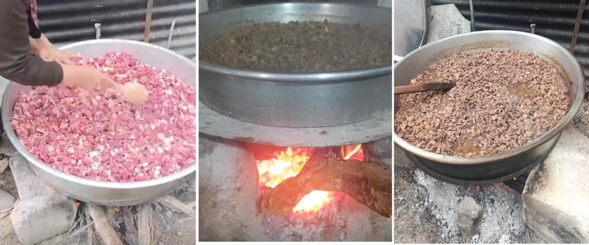 Binlerce yıllık yöntem olan eti kavurarak saklama yöntemi günümüzde Ağılbaşı Mahallesi’nde geleneksel usullerle yapılıyor.